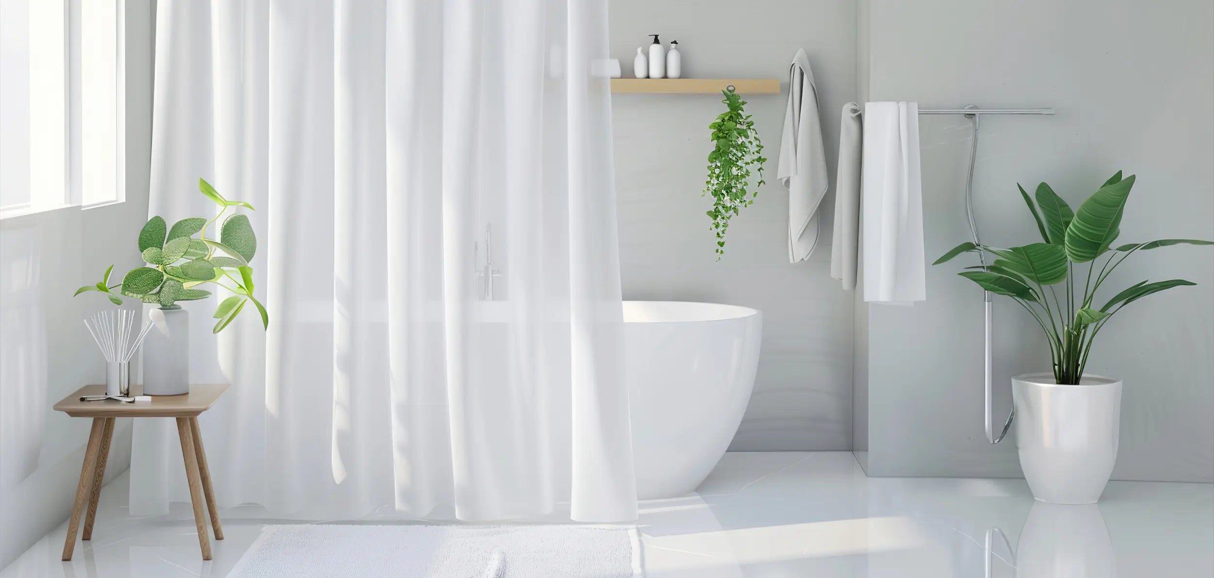 WITHLOC No Hook Shower Curtain with Snap in Liner - Eucalyptus Shower Curtain - Fabric Waterproof Inner Liner, Plants Green Leaves Modern Shower Curtains - Machine Washable, 71 x 74